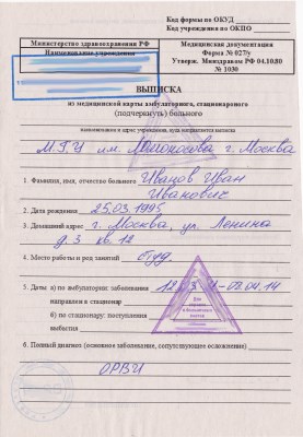 Цена медсправки 027у: от 1200 руб