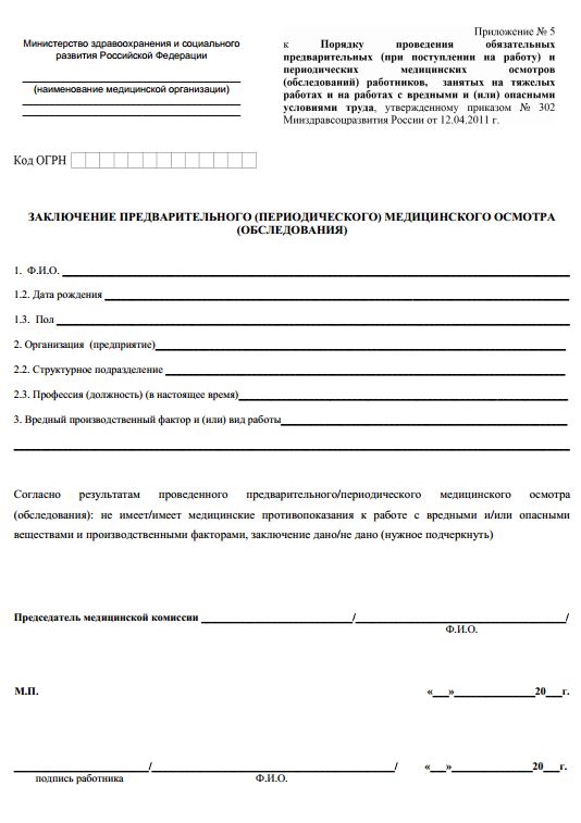 Данный бланк, заполненный результатами врачебных осмотров и анализов, потребуется при устройстве на практически любую работу. Его необходимо предоставить в отдел кадров – до, после или во время официального оформления человека в качестве сотрудника организации (исходя из требований конкретного работодателя).